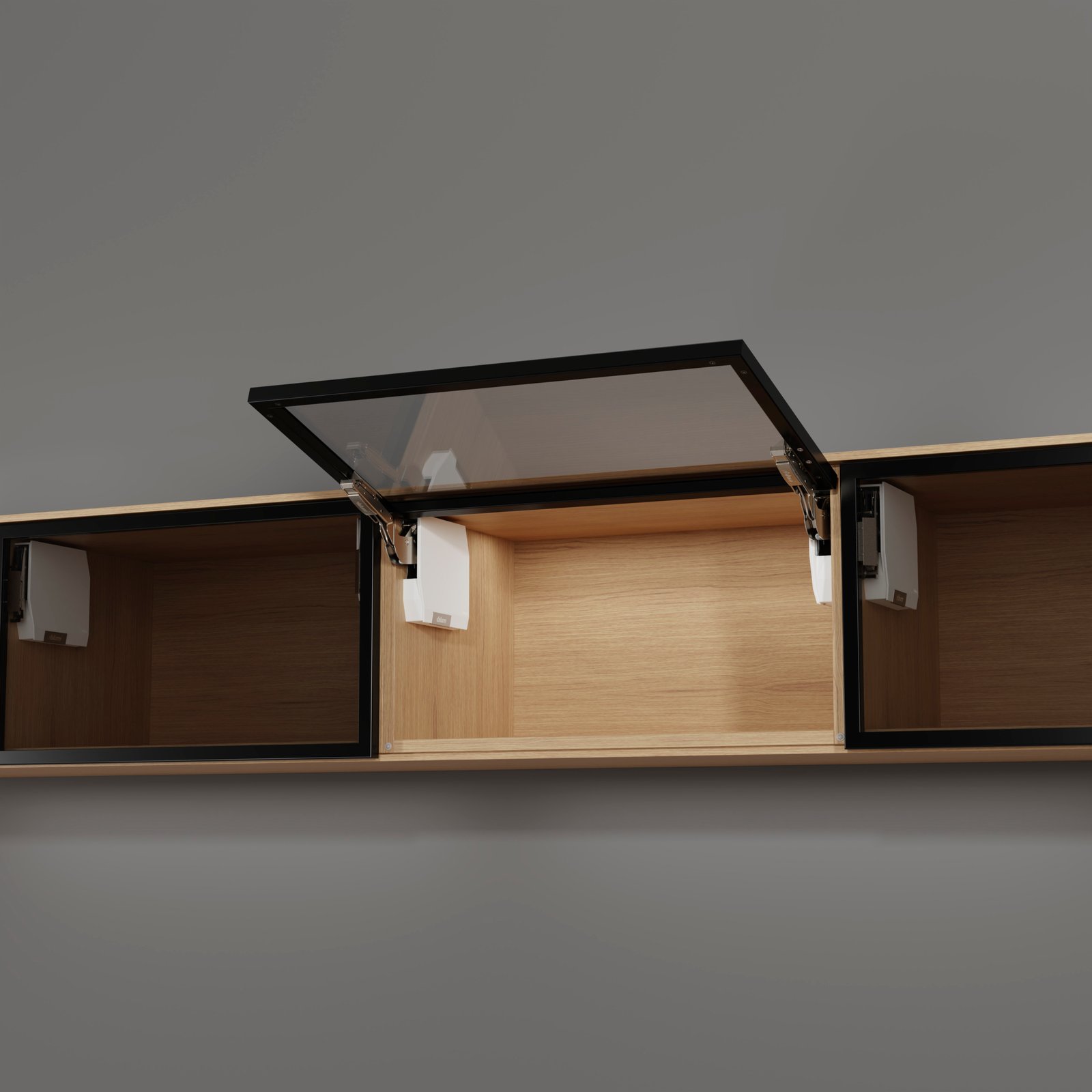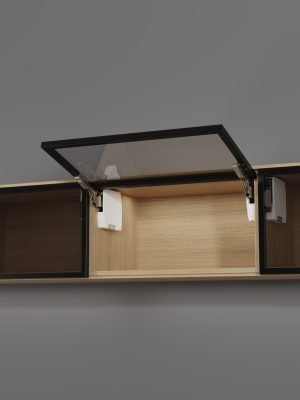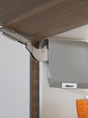 Com a ferragem para portas pequenas de elevação altas AVENTOS HK-S, o espaço disponível pode ser aproveitado de forma otimizada sobre refrigeradores ou despenseiros, por exemplo. No processo, o compacto acumulador de forças integra-se harmoniosamente a pequenos gabinetes e convence pelo alto conforto de montagem e manuseio.