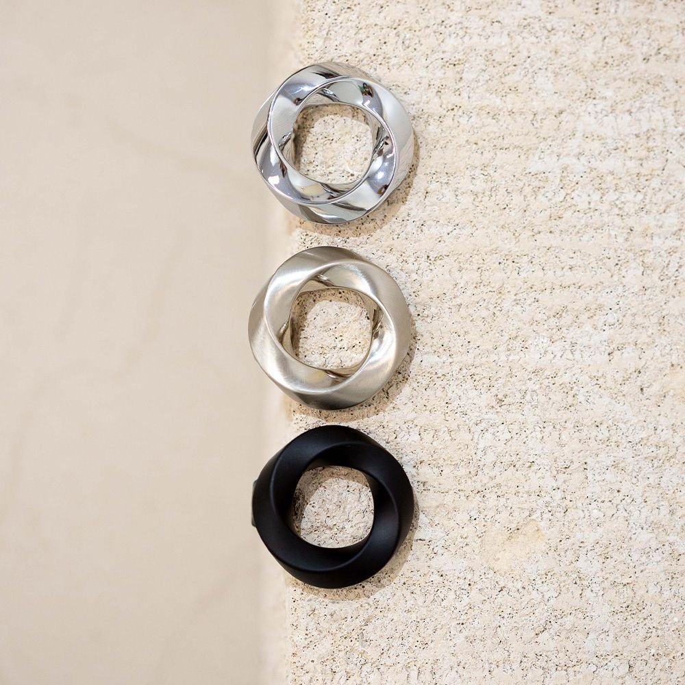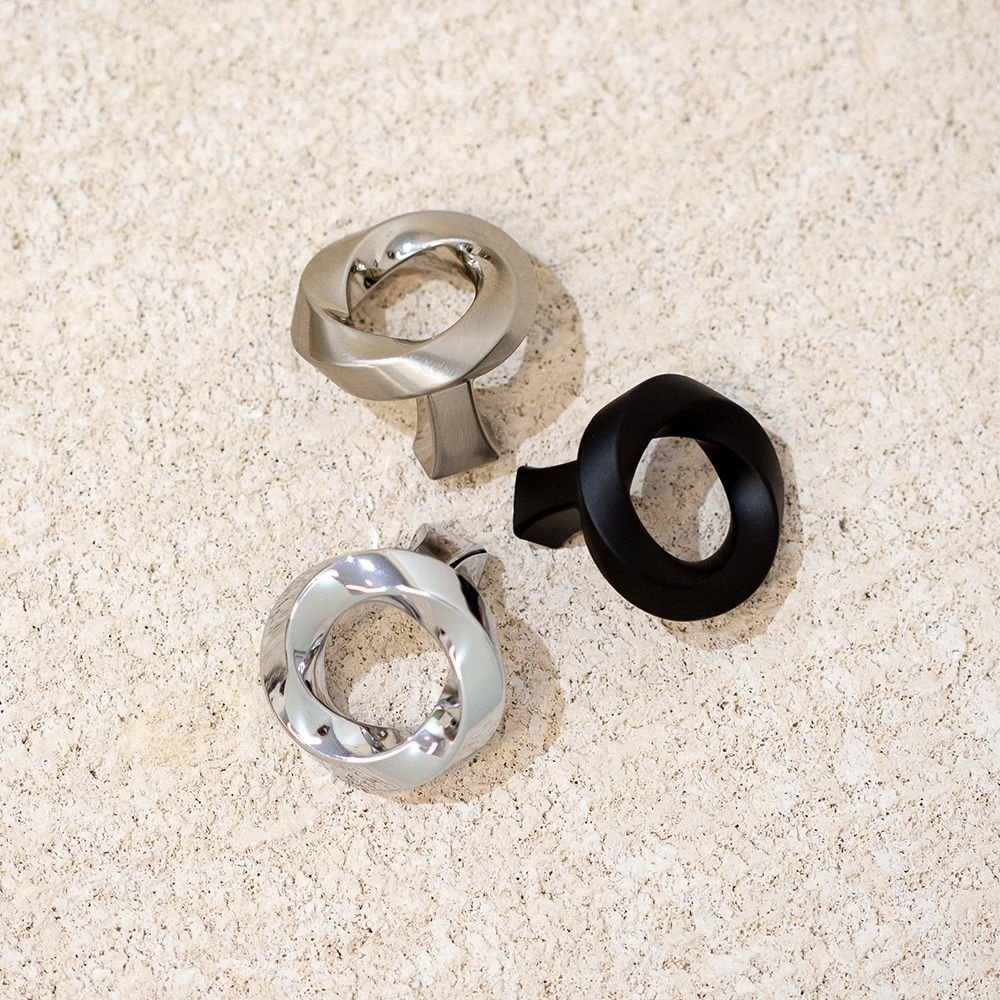 O puxador ponto da Linha Giro se destaca por suas linhas fluidas e marcantes, inspiradas no movimento elegante de uma espiral. Seu design exclusivo adiciona personalidade aos móveis, combinando funcionalidade, sofisticação e estilo. O puxador é compatível com o puxador em alça da mesma linha, criando uma composição harmoniosa.