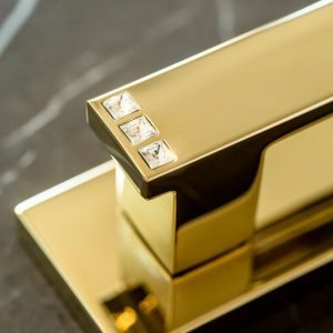 Com um design contemporâneo e refinado, e uma pegada confortável e funcional essa maçaneta é uma escolha perfeita para quem busca um toque de glamour em seu ambiente. Os detalhes de strass Swarovski adicionam um brilho delicado e elegante à peça, garantindo um visual sofisticado e refinado. Compatível com rosetas quadradas ou retangulares, ela oferece flexibilidade na escolha do estilo de decoração.
