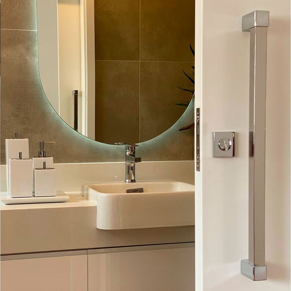 Este puxador de porta com linhas retas e geometrias marcantes é funcional e personalizável. Com várias opções de acabamentos e tamanhos disponíveis essa peça se adapta a diferentes tipos de portas, garantindo praticidade na escolha do estilo de decoração. Suas ponteiras podem ser personalizadas com cristal Swarovski, esmaltadas ou com iniciais, conferindo um toque único e exclusivo. Com alça em inox, esse puxador é resistente e durável, combinando com o design moderno e minimalista, oferecendo sofisticação sem abrir mão da praticidade.