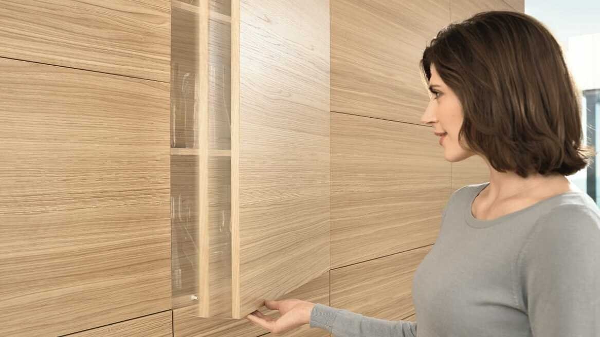 Sejam portas, portas de elevação altas ou sistemas de extensões: com um simples toque, móveis sem puxadores abrem pelo sistema de auxílio de abertura mecânico TIP-ON. E, para fechar, basta uma breve pressão na frente. O mecanismo TIP-ON também permanece com sua total funcionalidade, se portas, portas de elevação ou extensões forem erguidas com a mão.