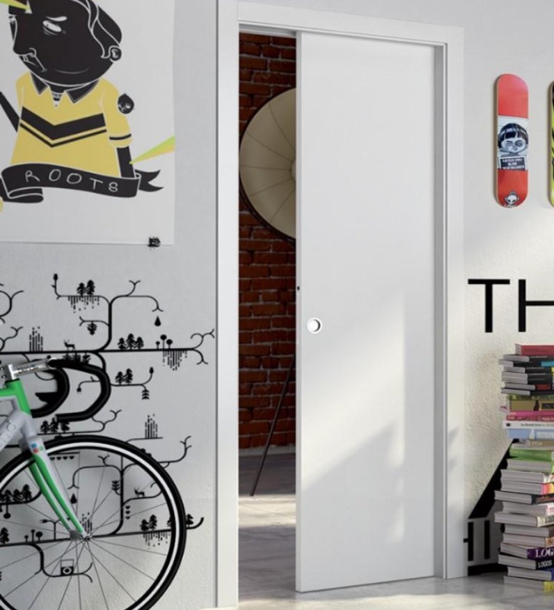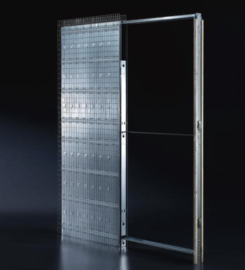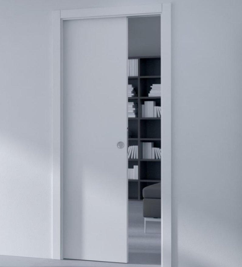 A porta embutida único para alvenaria, ou seja, sistema de embutir para uma folha. É uma estrutura metálica de aço zincado que entra na parede no lugar do tijolo, consequentemente não aumenta a espessura da parede. Fabricada de forma que recebe diretamente chapisco e reboco e se engloba à parede sem alterar a espessura original.