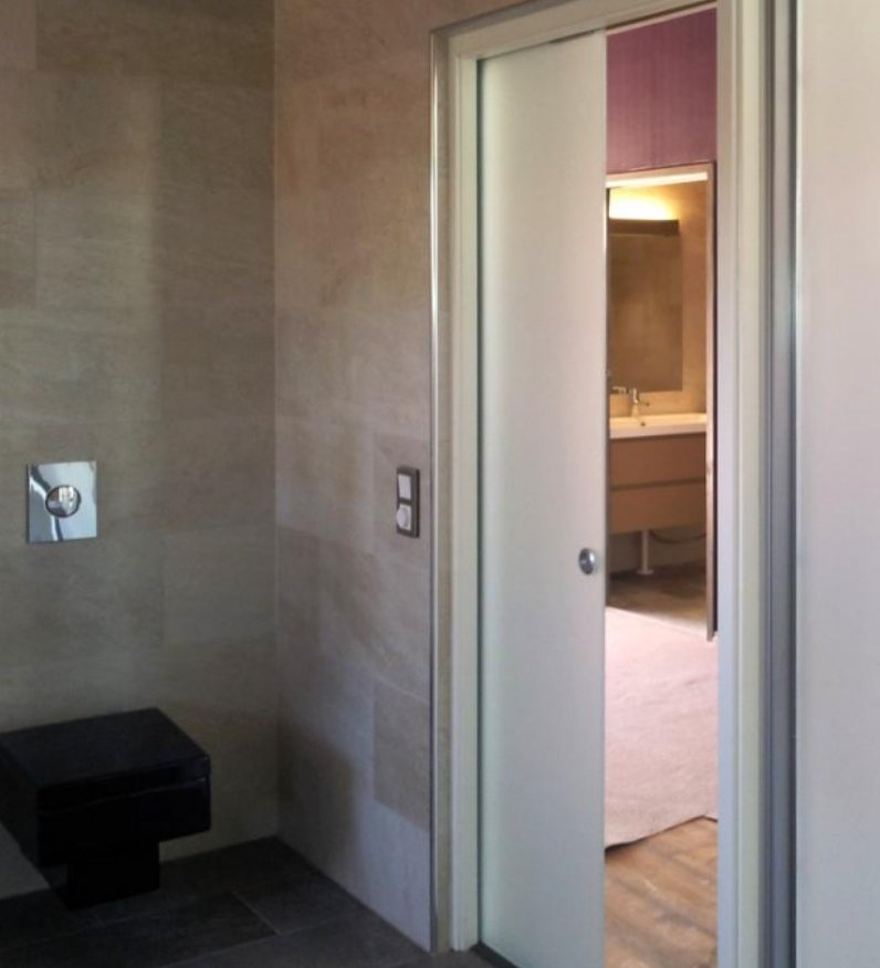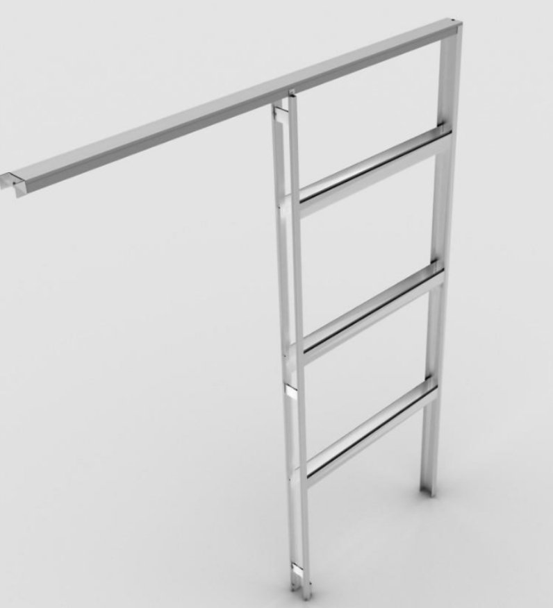 A porta embutida para drywall, ou seja, sistema para uma folha na parede de gesso acartonado. Uma vez montada fica perfeitamente no esquadro e consequentemente faz de gabarito para completar a colocação dos montantes verticais da parede. A estrutura metálica em aço galvanizado é completamente compatível com a estrutura metálica da parede de drywall.